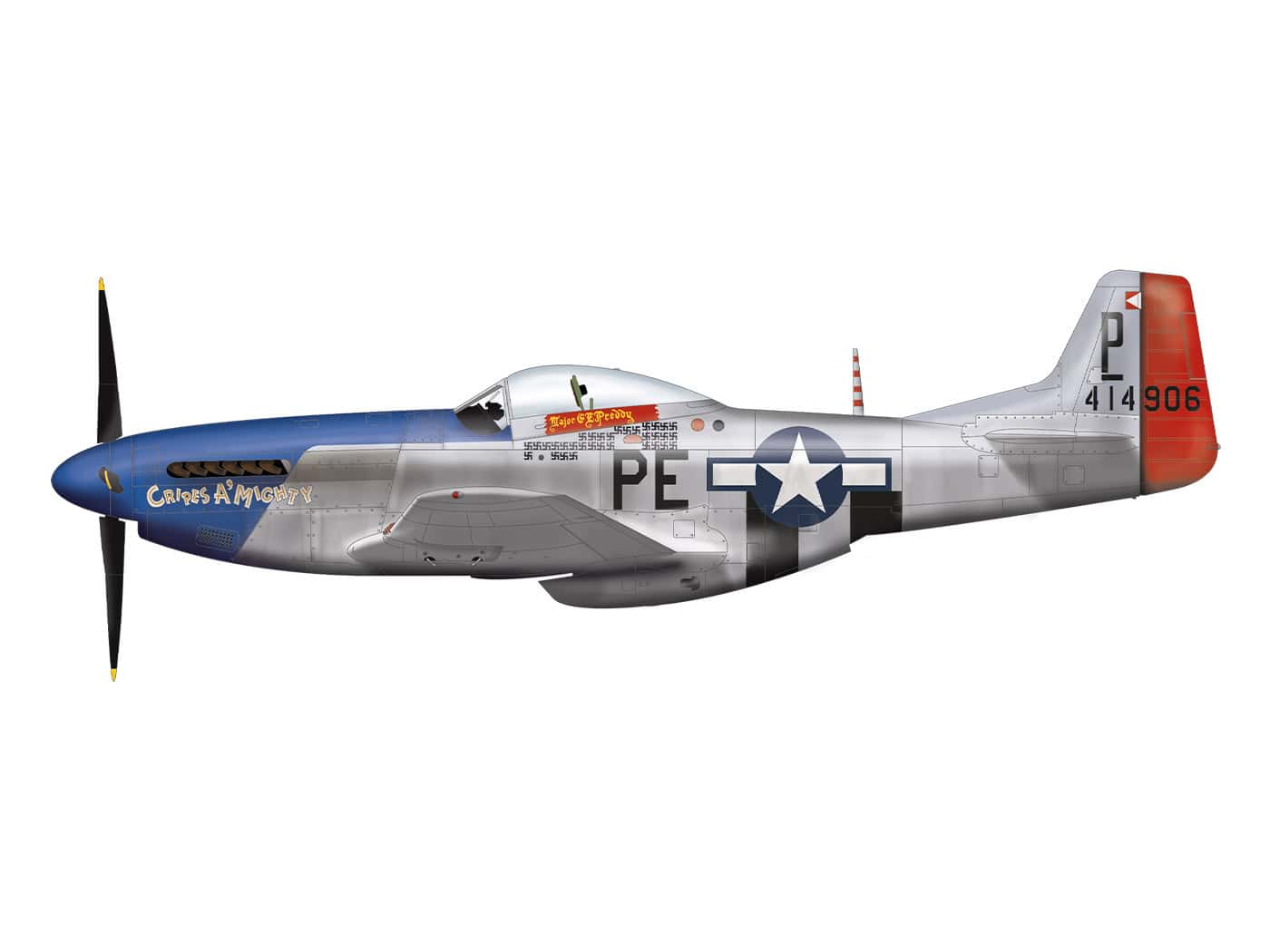 “Cripes A’Mighty” was a Blue nose P-51D-15NA Mustang with serial number 44-14906 of the 328th Fighter Squadron, 352nd Fighter Groupand was flown by Major George E. Preddy, the top P-51 Mustang Ace of World War II. He had down 26,83 enemy air-to-air kills. On Christmas Day 1944, while pursuing a Focke Wulf Fw-190 near Liège in Belgium, he was hit by a US anti-aircraft battery and crashed at high speed. He did not survive the crash. He was just 26 years old.