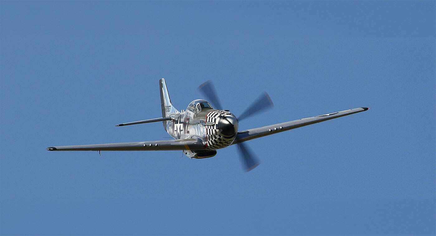 “The Hawk-Eye-Owan” is a blue nose P-51D-10NA Mustang with serial number 44-14801 of the 487th Fighter Squadron, 352nd Fighter Group and was flown by Lt. Dean M. Huston and stationed at Opglabbeek Airfield. Huston was from Iowa, hence the nose-art “Eye-Owan”. On January 1, 1945, Huston attacked incoming Luftwaffe fighters during Operation Bodenplatte. The unit shot down 23 aircraft, with only 2 Mustangs damaged.