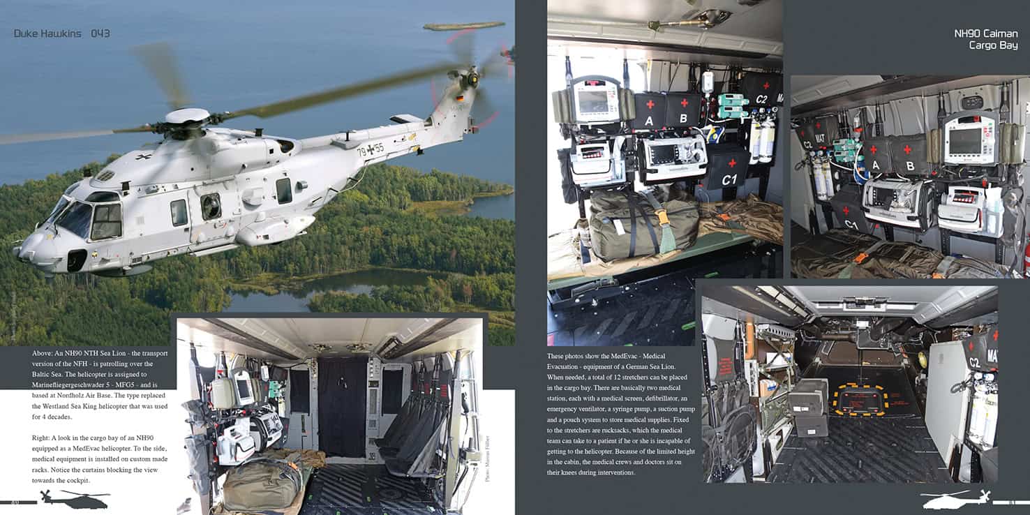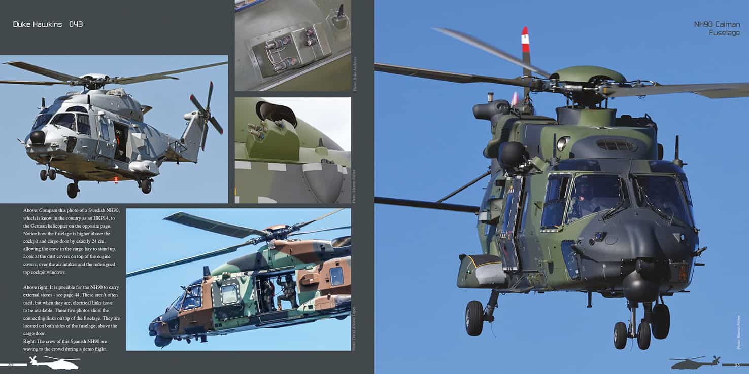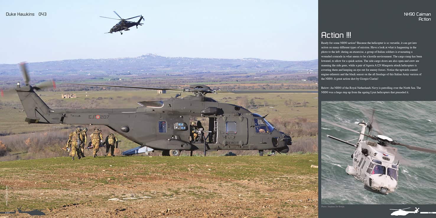 The NH90 helicopter, built by NH Industries, is a medium sized, European built military helicopter that was ordered by 14 different air arms. While the introduction of the type has not been without its problems, today 12 of them continue to fly the helicopter. This book, which holds nearly 400 photos in a total of 148 pages, brings a complete portrait of the NH90, both in detail and in action. Included in this book is one of the most extensive maintenance chapter we’ve ever done. All versions of the NH90 are included and it offers a detailed look of the different cockpits, cabins and configurations. It shows the helicopter during rescue missions, in action over Africa, Australia and New Zealand and during training missions all over Europe.