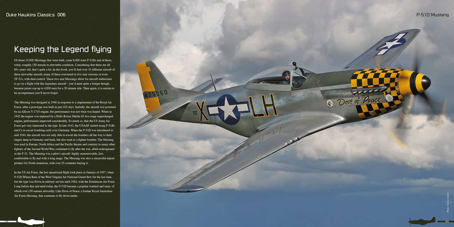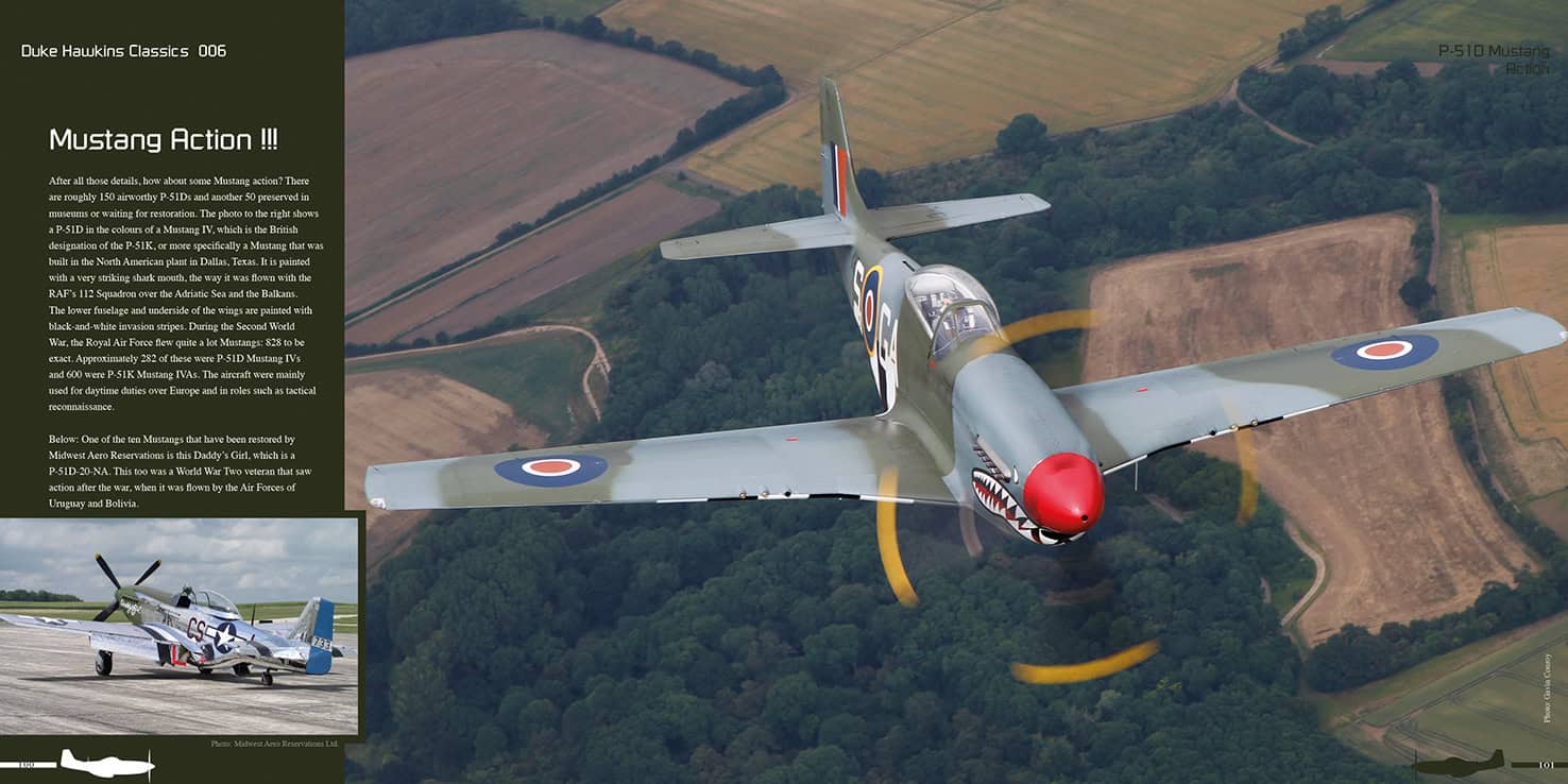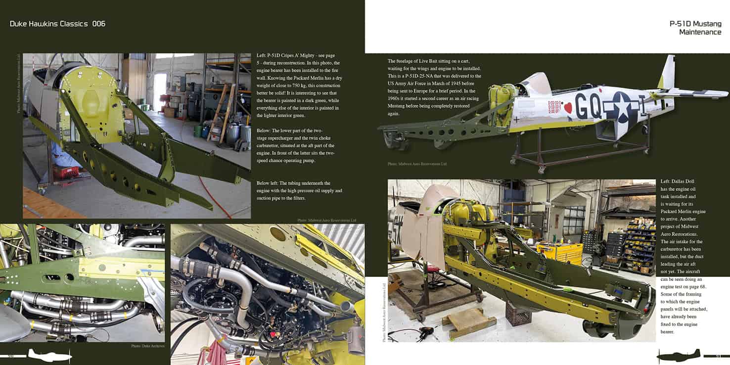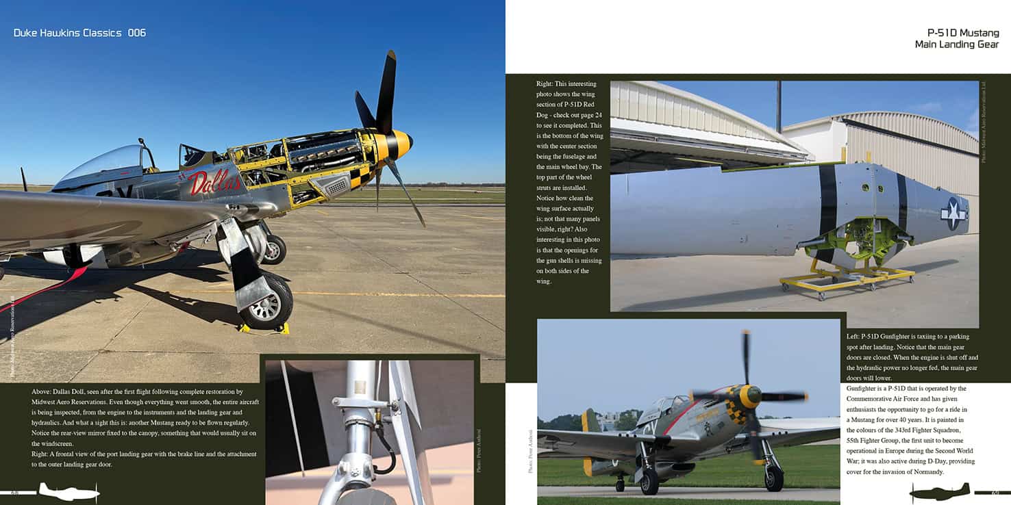 A 116-page book on the iconic North American P-51D Mustang, with photos from airworthy Mustangs from all over the world. No part of the Mustang is overlooked in this book, including the cockpit, wings, landing gear, fuselage and tail section. An extensive maintenance chapter is included, showing the wing gun bays, Packard Merlin engine and much more. Fantastic photos are included of the restoration projects done by Midwest Aero Restorations in Illinois.